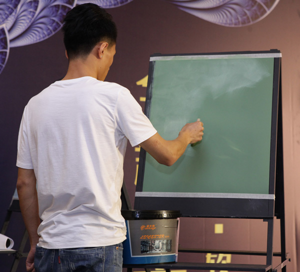 為讓蒙太奇經(jīng)銷商更直觀感受藝術(shù)涂料施工過程,羅總攜技師人員,現(xiàn)場演示并講解施工注意事項。臺下經(jīng)銷商家人仔細觀看,認真聆聽,有疑問現(xiàn)場提出,并得到專業(yè)解答。