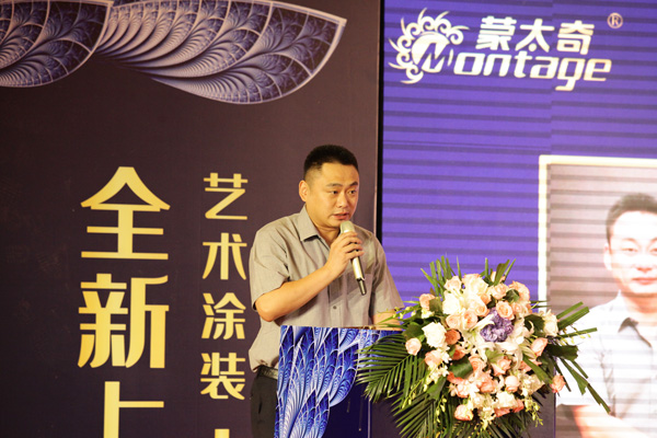 新品發布會上,中國建筑裝飾裝修材料協會硅藻泥分會朱秘書長,對建材行業深度剖析。期間,講到當前市場產品品類多,消費形式升級,企業或經銷商需要尋求新的銷售模式。而蒙太奇將硅藻泥與藝術涂料、軟裝結合,多品類產品必將成為行業引航者。然后祝賀蒙太奇新品發布會圓滿成功。