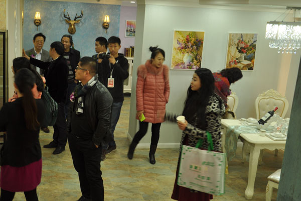趙總隨后向各位領導、嘉賓朋友們介紹了公司熱銷產品系列,如:硅藻泥、白炭黑、藝術涂料,還有自主研發的手工壁紙、無機礦物等產品。為跟上時尚潮流,滿足當代消費者對時尚藝術的追求,公司原裝引進國外技術,即:藝術地坪,既不是地板磚,也不是木地板,也不是其它材料,而是直接在水泥上面制作,可以根據消費者的需求選擇地面的顏色及圖案。豐富多彩的產品系列滿足了不同職業、不同人群、不同風格人群的對生活品味的追求。
