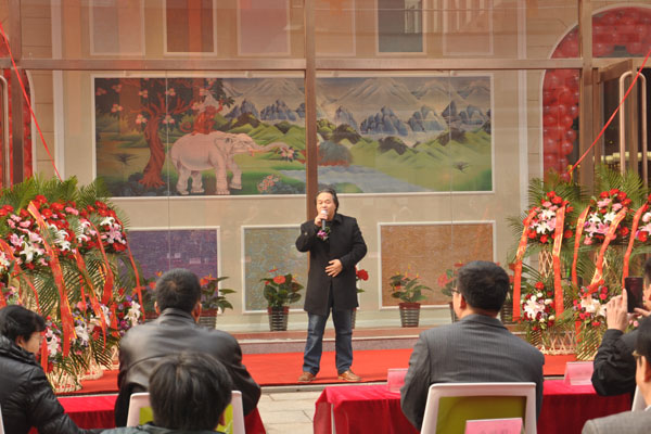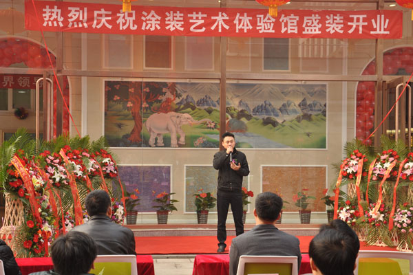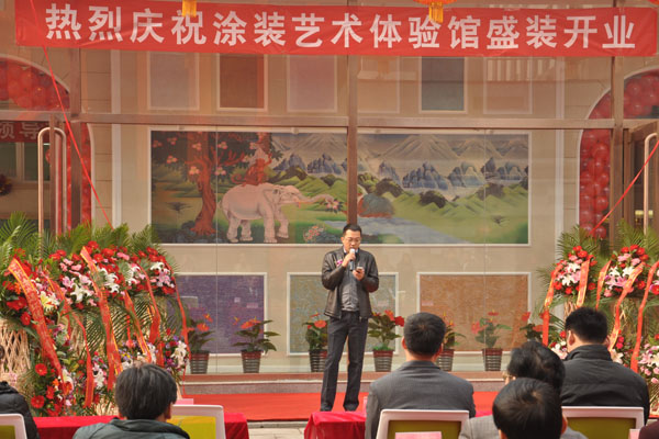 中國硅藻泥協秘書長朱厚舉為涂裝藝術體驗館開業致辭