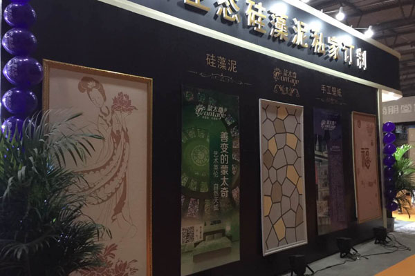 【陳總】:蒙太奇的特色產(chǎn)品實(shí)在太多了,咱們這次主推的特色產(chǎn)品是咱們的白炭黑與手工壁紙新產(chǎn)品。這次帶來的多款白炭黑產(chǎn)品質(zhì)感細(xì)膩,做出的印花效果遠(yuǎn)超壁紙,而且不起皮不翹邊不發(fā)霉,還有硅藻泥的功能特性。另外這次帶來的手工壁紙新產(chǎn)品也是很有特色,耐擦洗,工藝肌理簡單大方,很受現(xiàn)場客戶歡迎。我們的特惠套餐主要是推出手工壁紙和硅藻泥相結(jié)合的產(chǎn)品,實(shí)測實(shí)算,讓客戶享受到優(yōu)惠。