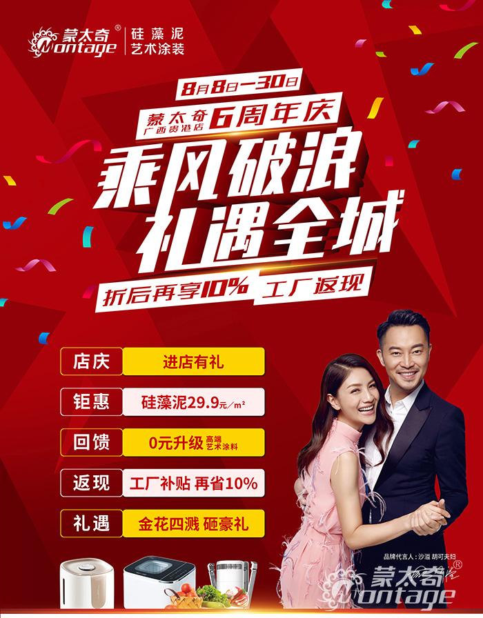 蒙太奇廣西貴港店6周年慶活動正在火熱進行中,此次活動優惠多多,不僅有0元升級藝術涂料、還有預付定金參與工廠補貼,更有驚喜砸金蛋等多重好禮!